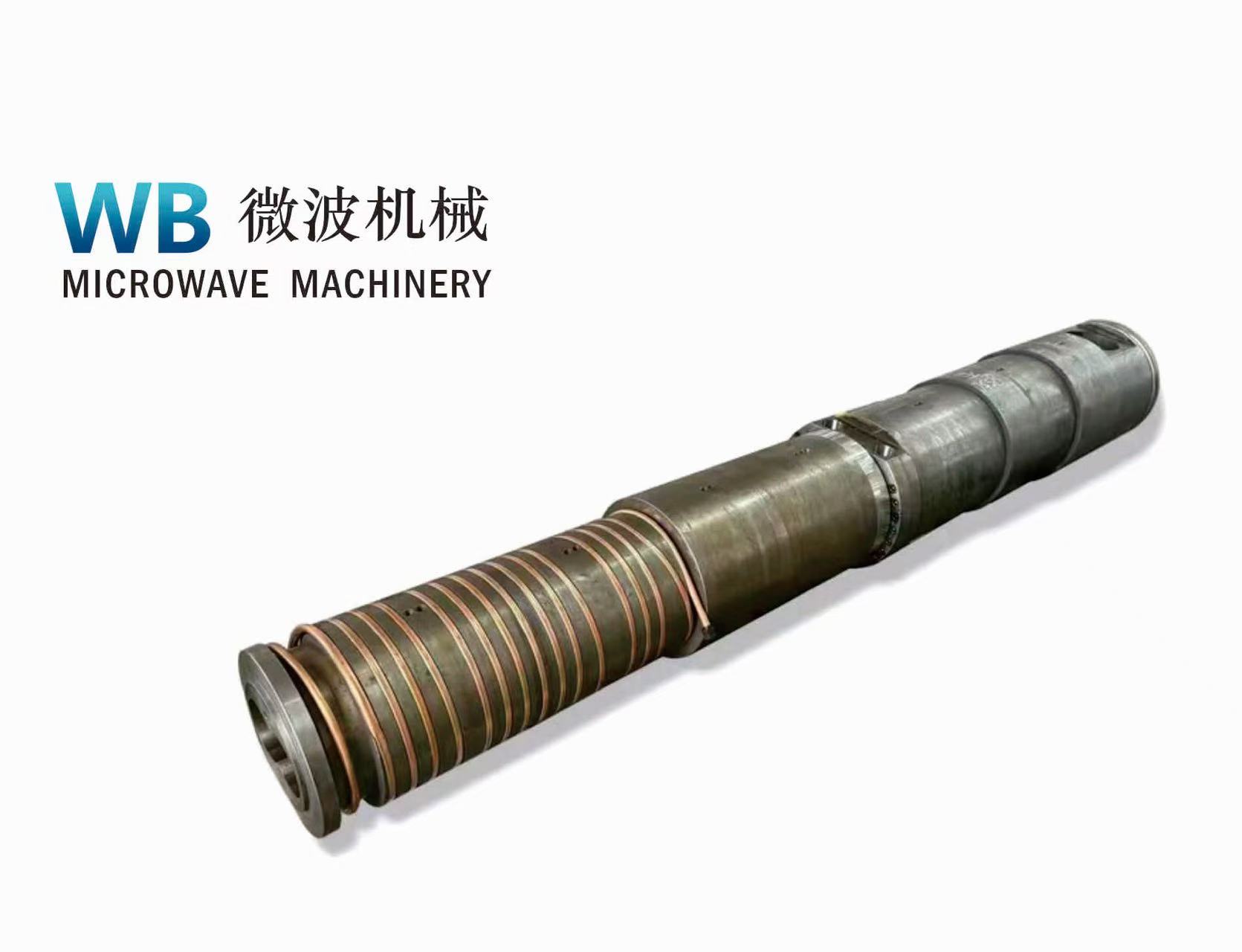W odróżnieniu od tradycyjnych wytłaczarek wykorzystujących ogrzewanie zewnętrzne, w specjalnym ślimaku prezentowanym przez firmę zastosowano technologię ogrzewania wewnętrznego wspomaganą mikrofalami. Jak widać na eksponacie, końcówka śruby jest owinięta precyzyjną cewką w kolorze miedzi, stanowiącą rdzeń generatora mikrofal, która bezpośrednio podgrzewa materiał wewnątrz śruby. To skutecznie rozwiązuje problem tradycyjnego opóźnienia w nagrzewaniu, znacznie poprawiając efektywność ogrzewania i zmniejszając zużycie energii, dzięki czemu szczególnie nadaje się do obróbki materiałów wrażliwych na ciepło.